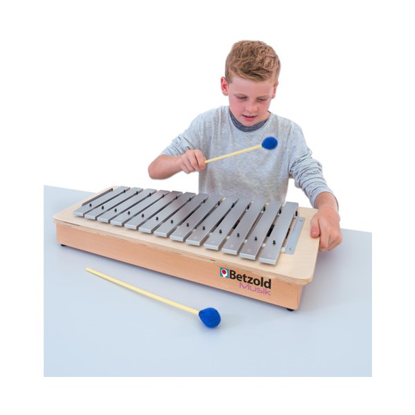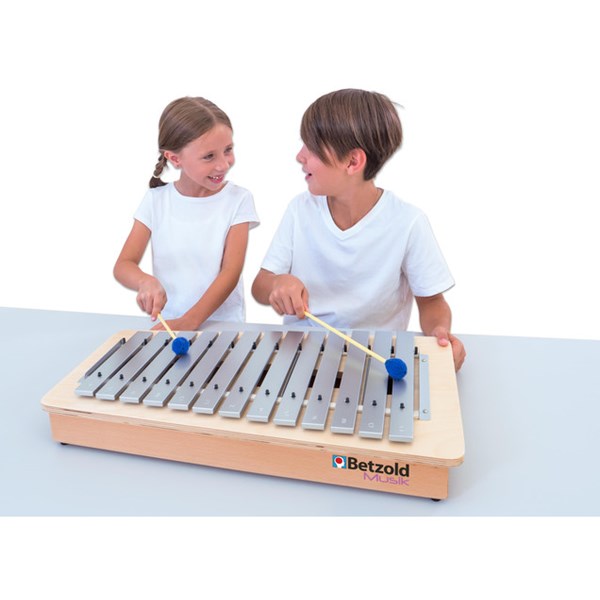 Die flache Bauweise verbindet den vollen Klang eines normalen Metallophons mit praktischen Vorteilen für den Einsatz in der Schule. Dank der geringen Höhe lassen sich die Kompakt-Instrumente ganz einfach auf jedem normalen Schultisch spielen – höhenverstellbare Spieltische sind damit nicht mehr nötig. Die Kinder können bequem im Sitzen oder auch im Stehen kleine Melodien oder Rhythmen spielen. So verbessern sie ihr Rhythmus-Gefühl und lernen Tonleitern kennen. Zudem können sie Lieder begleiten oder zusammen in einer Gruppe musizieren.
